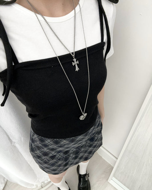 【韓系夏日疊穿CP值套裝| 日常Daily必入】Soft Monochrome 甜美雙肩綁帶蝴蝶結背心 x 寬鬆棉質 T-Shirt 2件套