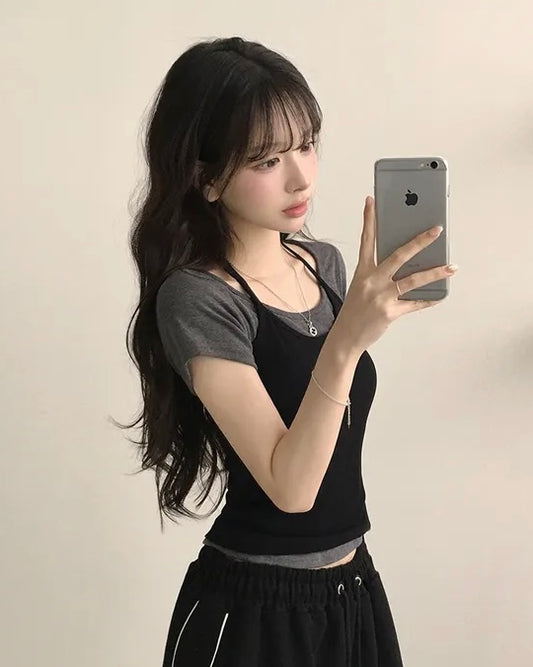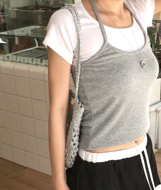 【韓系夏日疊穿CP值套裝| 日常Daily必入】Normcore 極簡掛脖背心 x 棉質 T-Shirt 2件套