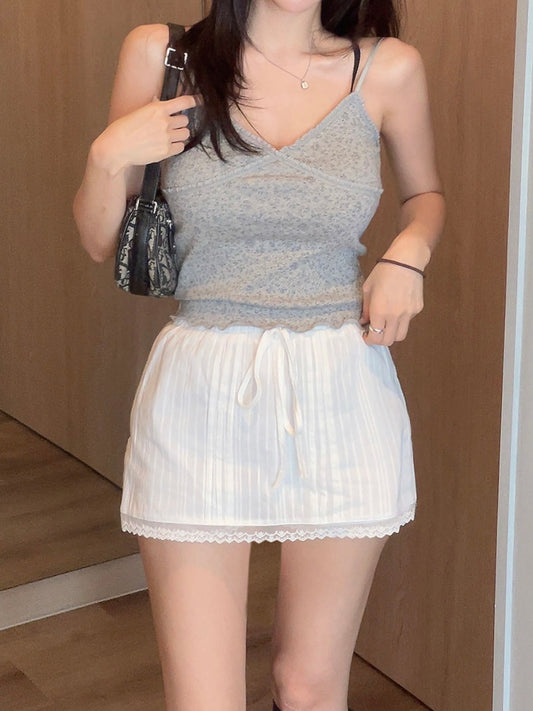 【小個子/偏瘦必入】韓系清純溫柔風蕾絲刺繡蝴蝶結裙褲