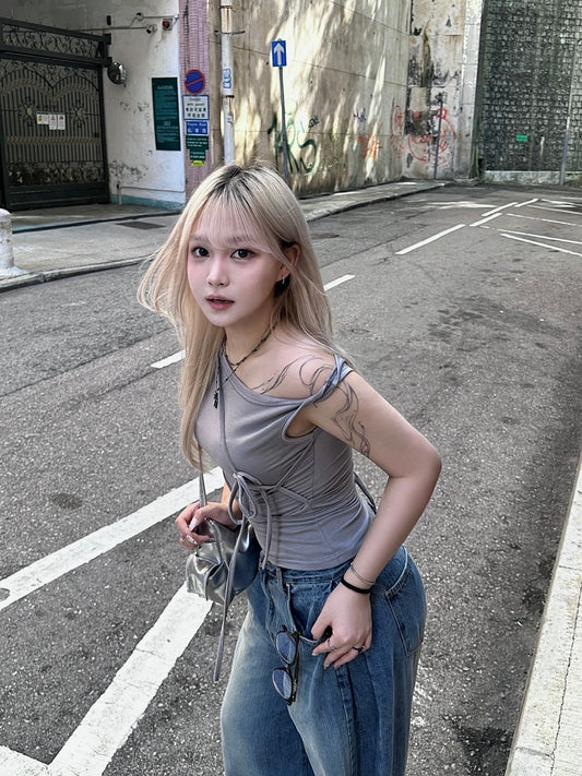 【極簡韓式氣質】Desert Dawn 裸膚冰感芭蕾舞風交叉綁帶Top