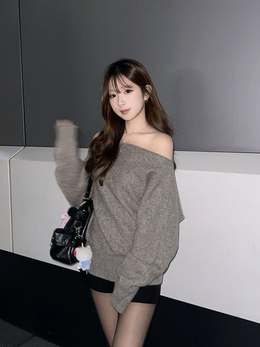【韓網熱賣🪵約會氣質款式】Sandalwood混色2 ways小性感一字肩針織冷衫