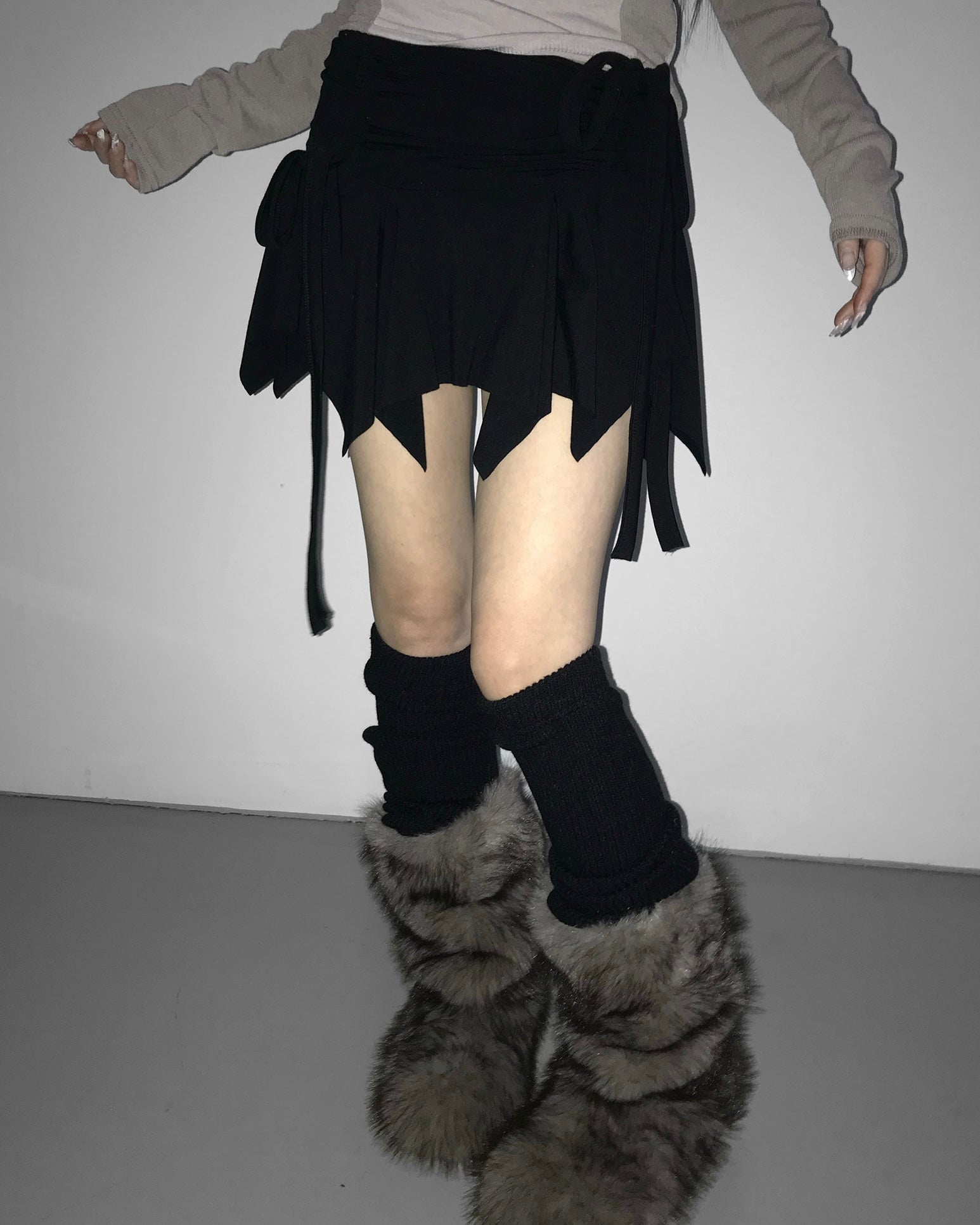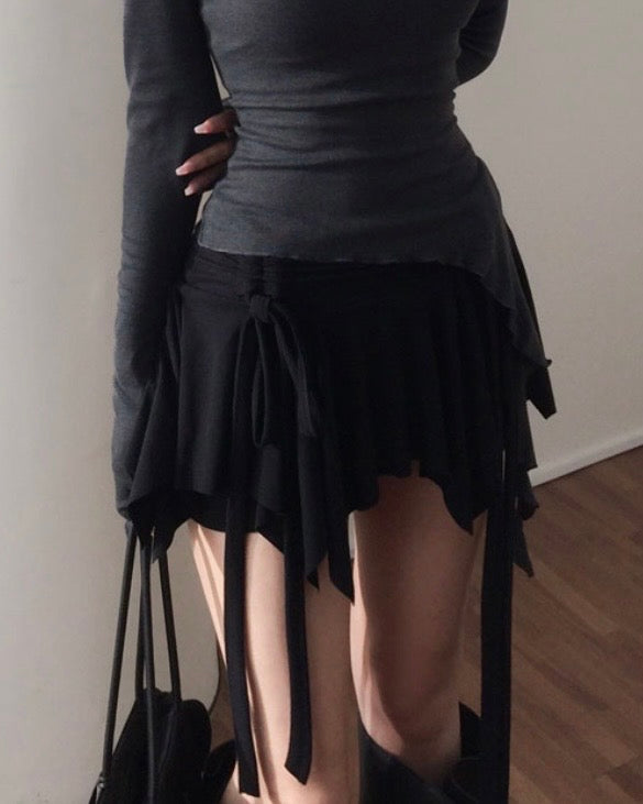 【甜美疊穿必入♪ 柔美Balletcore】Fairytales 束帶不規則層次高腰彈力裙褲