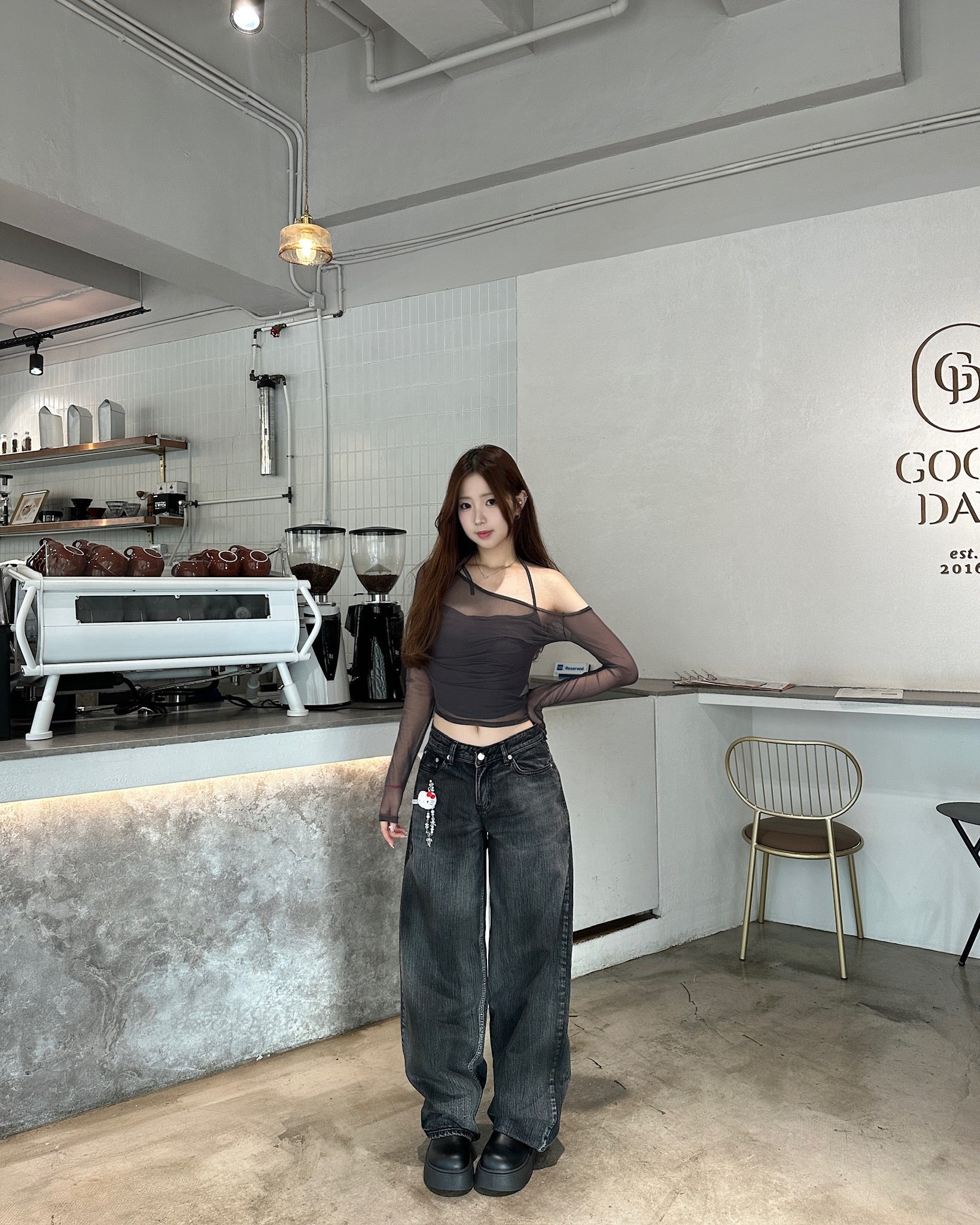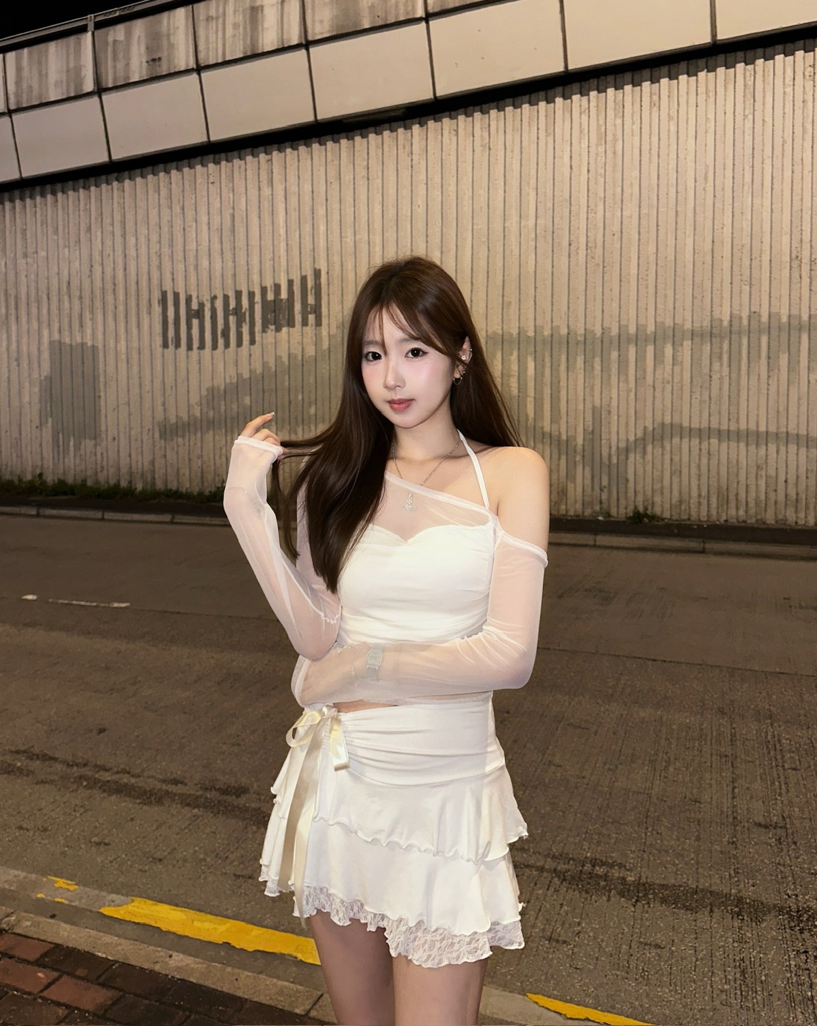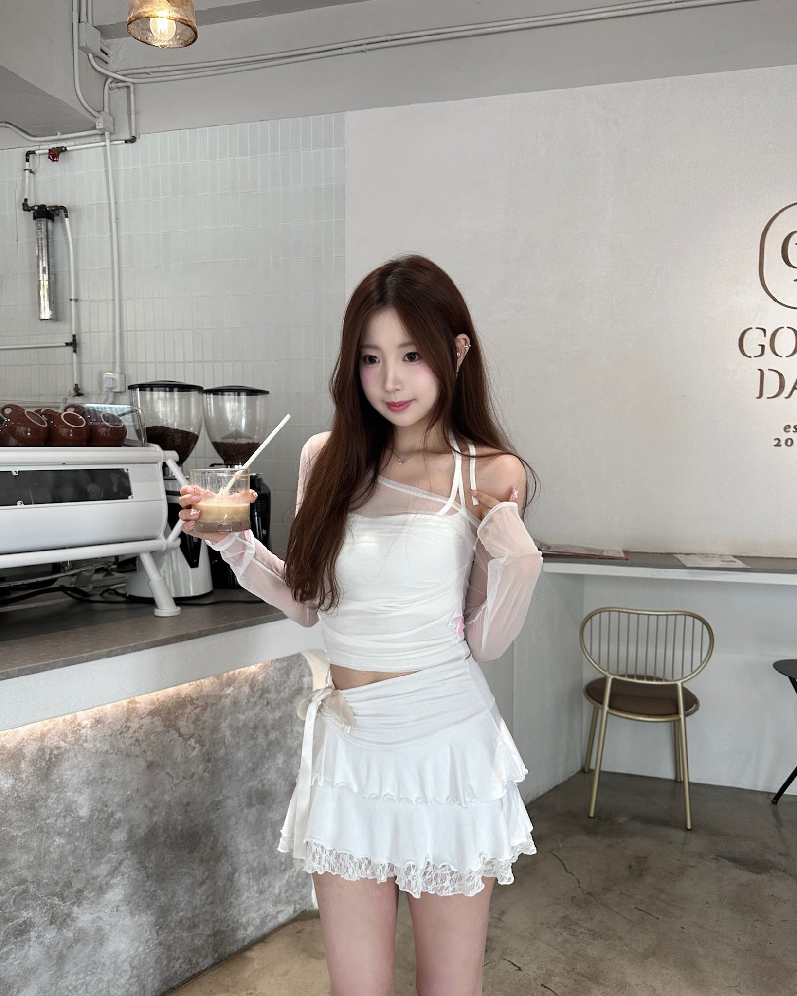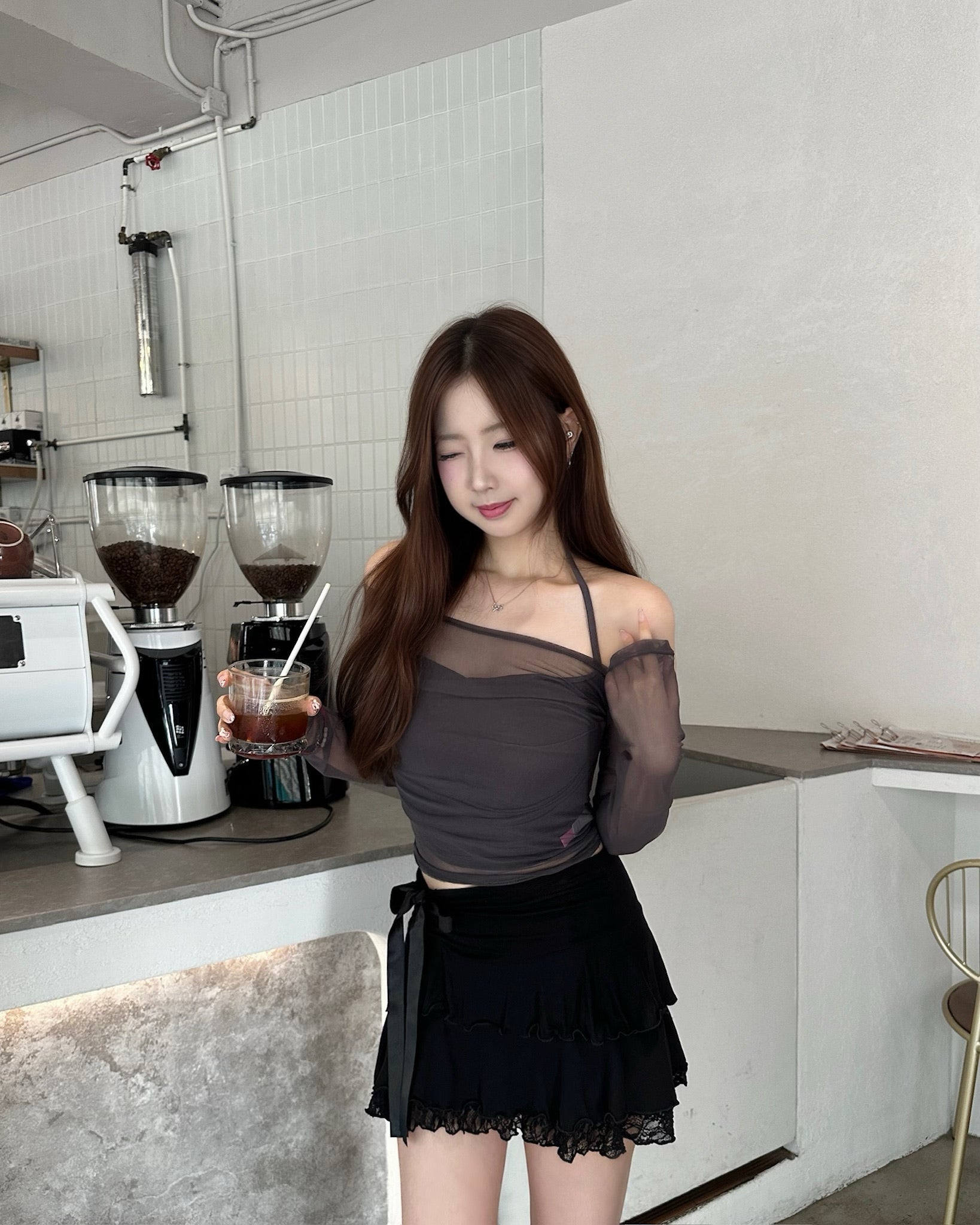 【約會穿搭推薦】Moonlit 斜肩薄紗長袖Top x 絲滑感皺皺掛脖背心 set