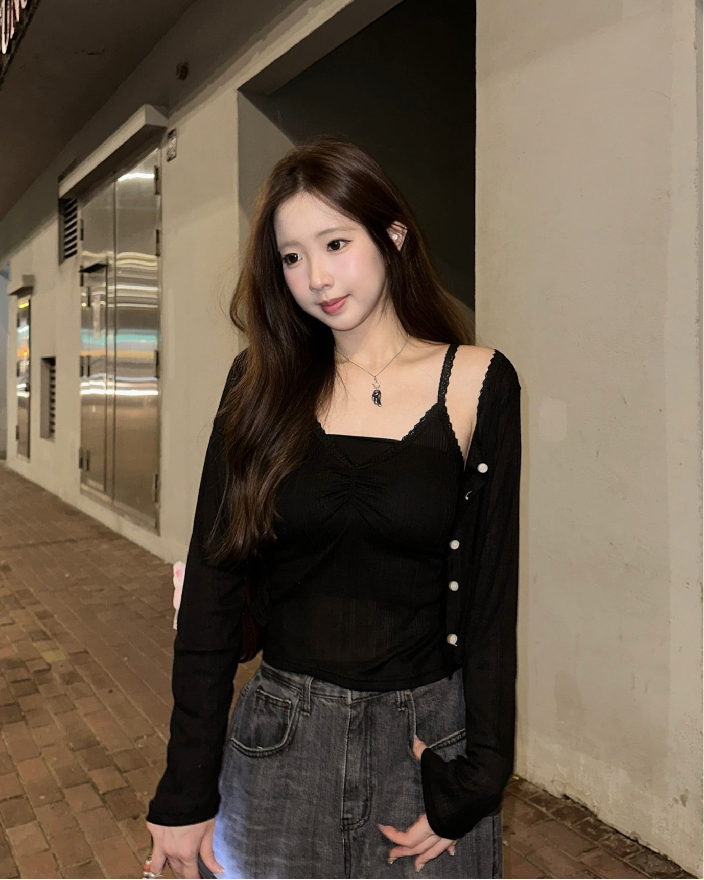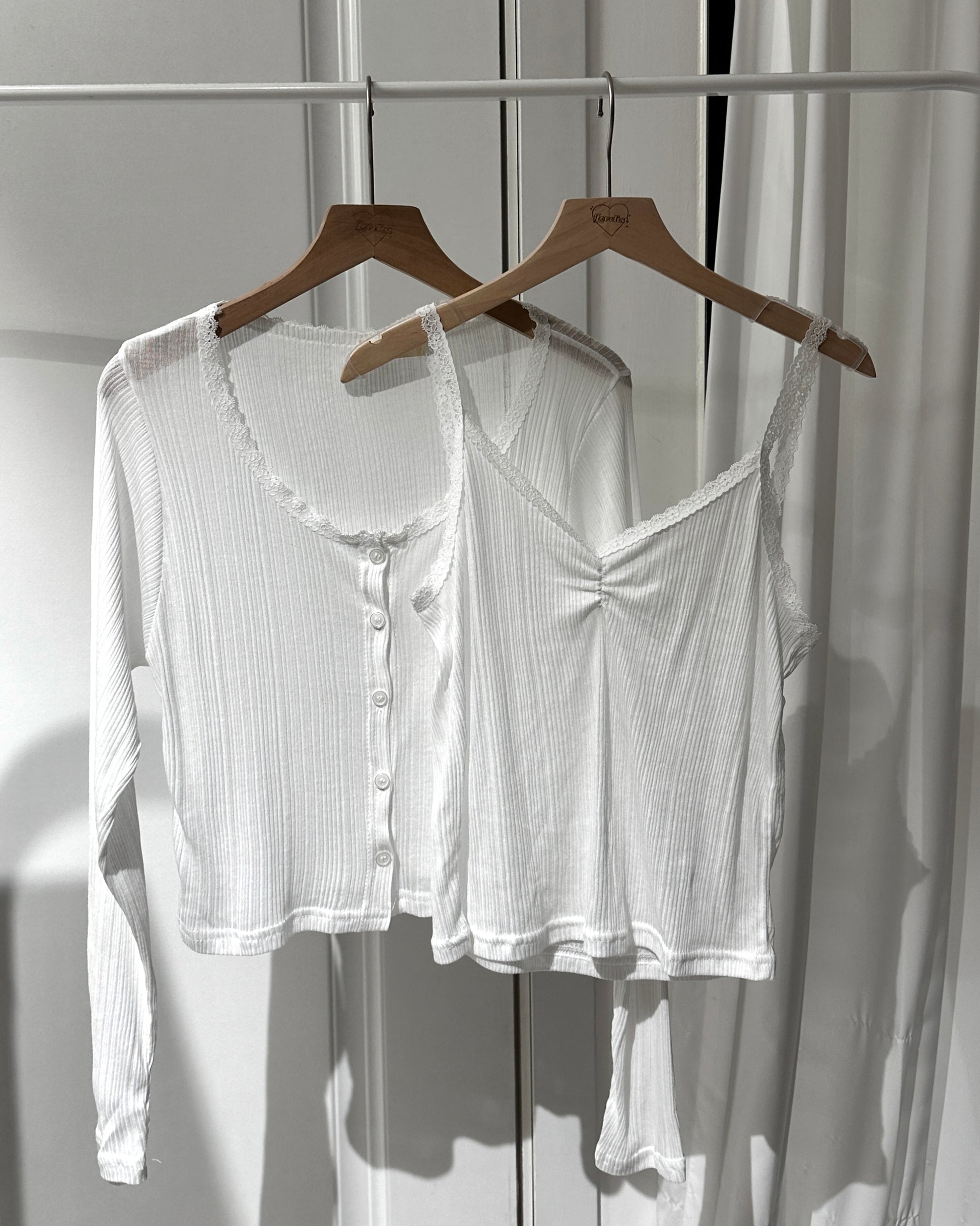 【1 set 2件套】Morning Light超輕柔飄逸蕾絲V領背心外套