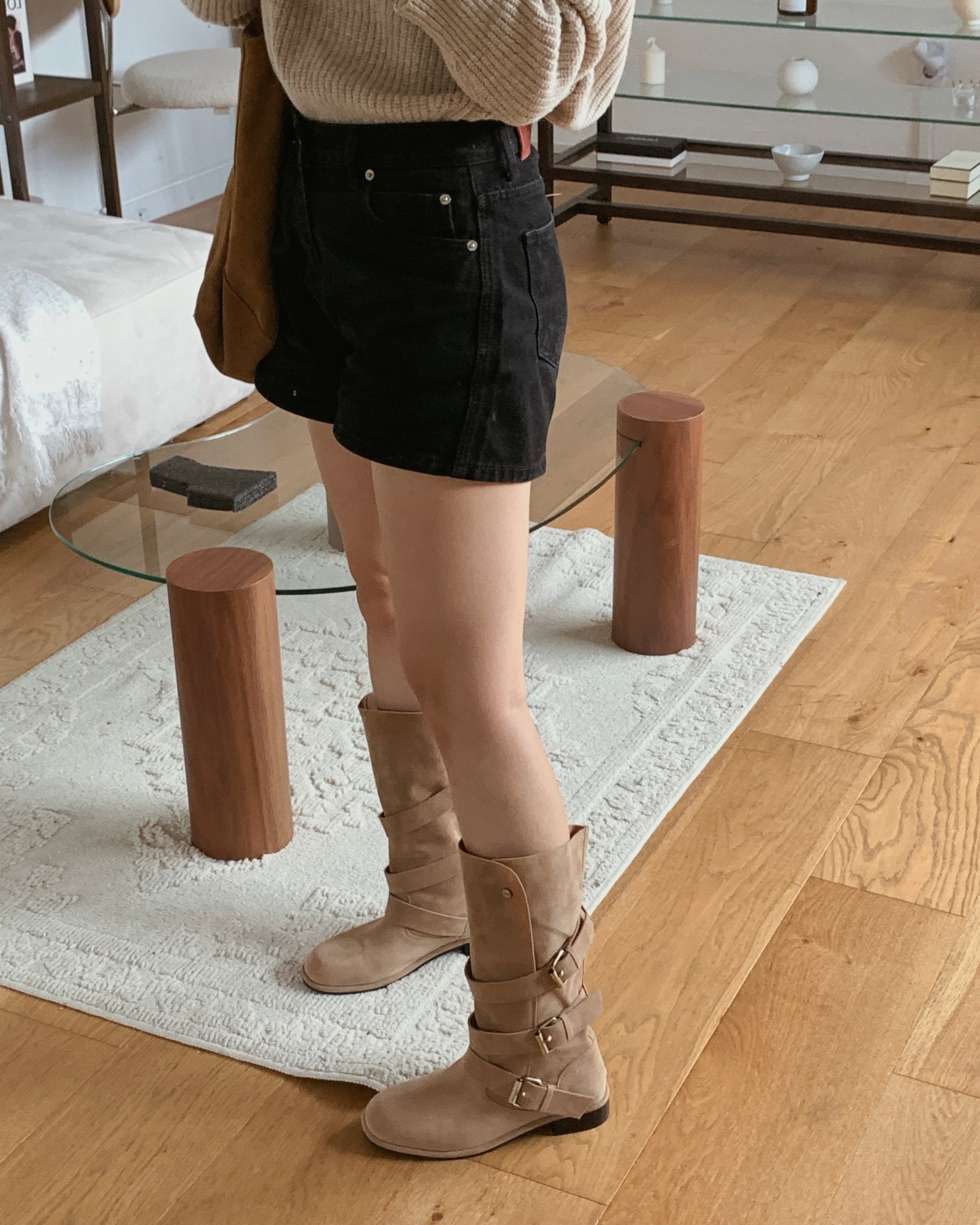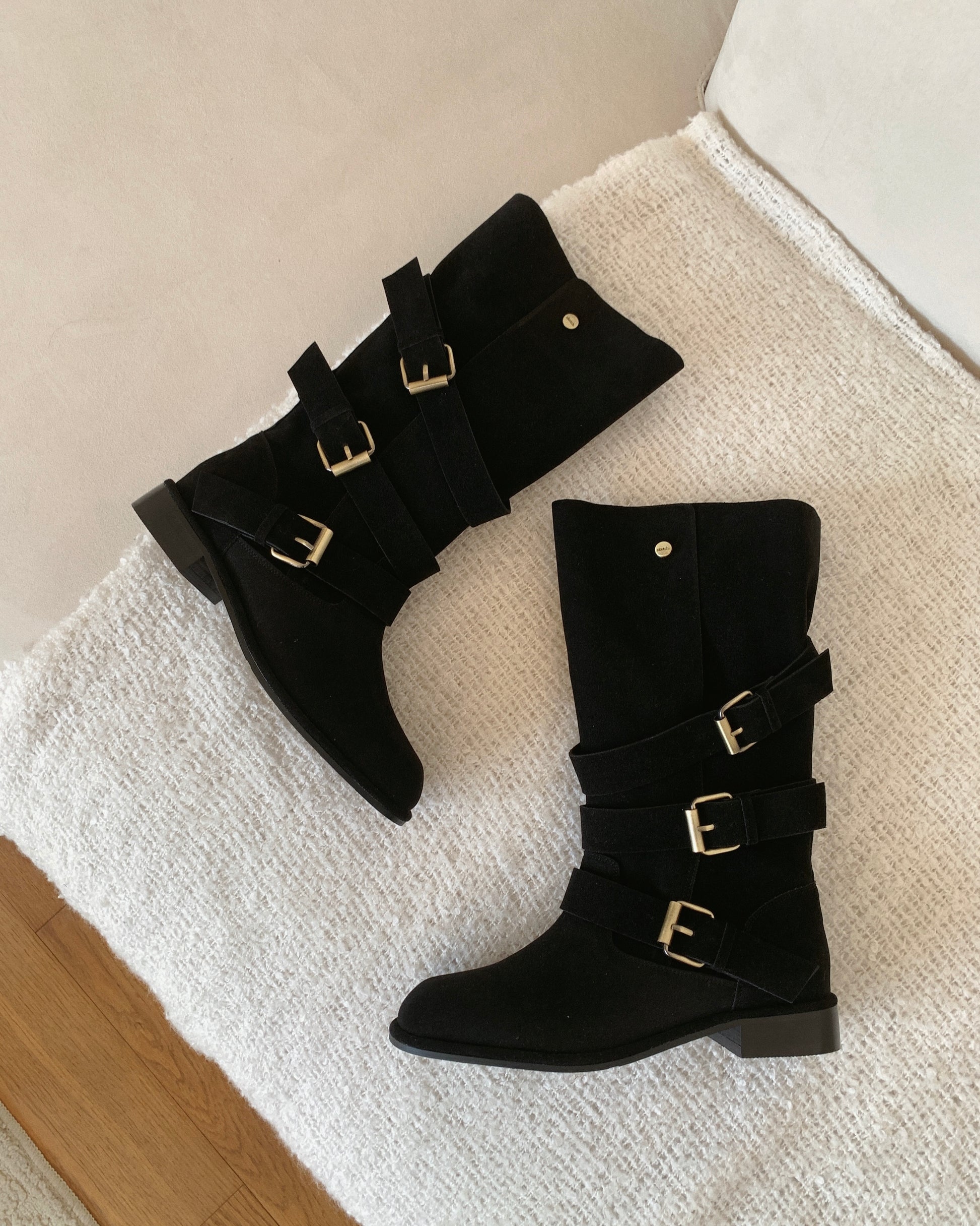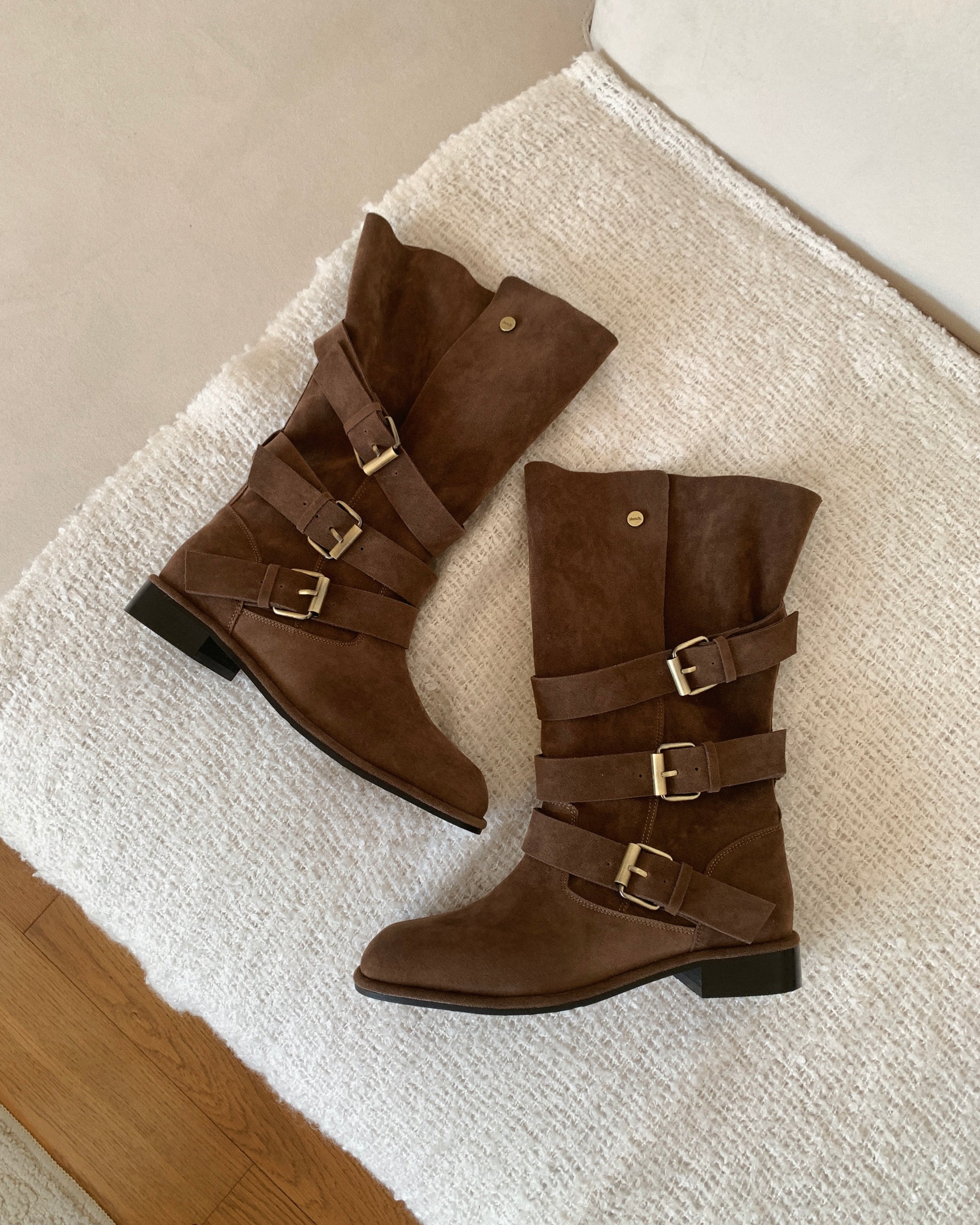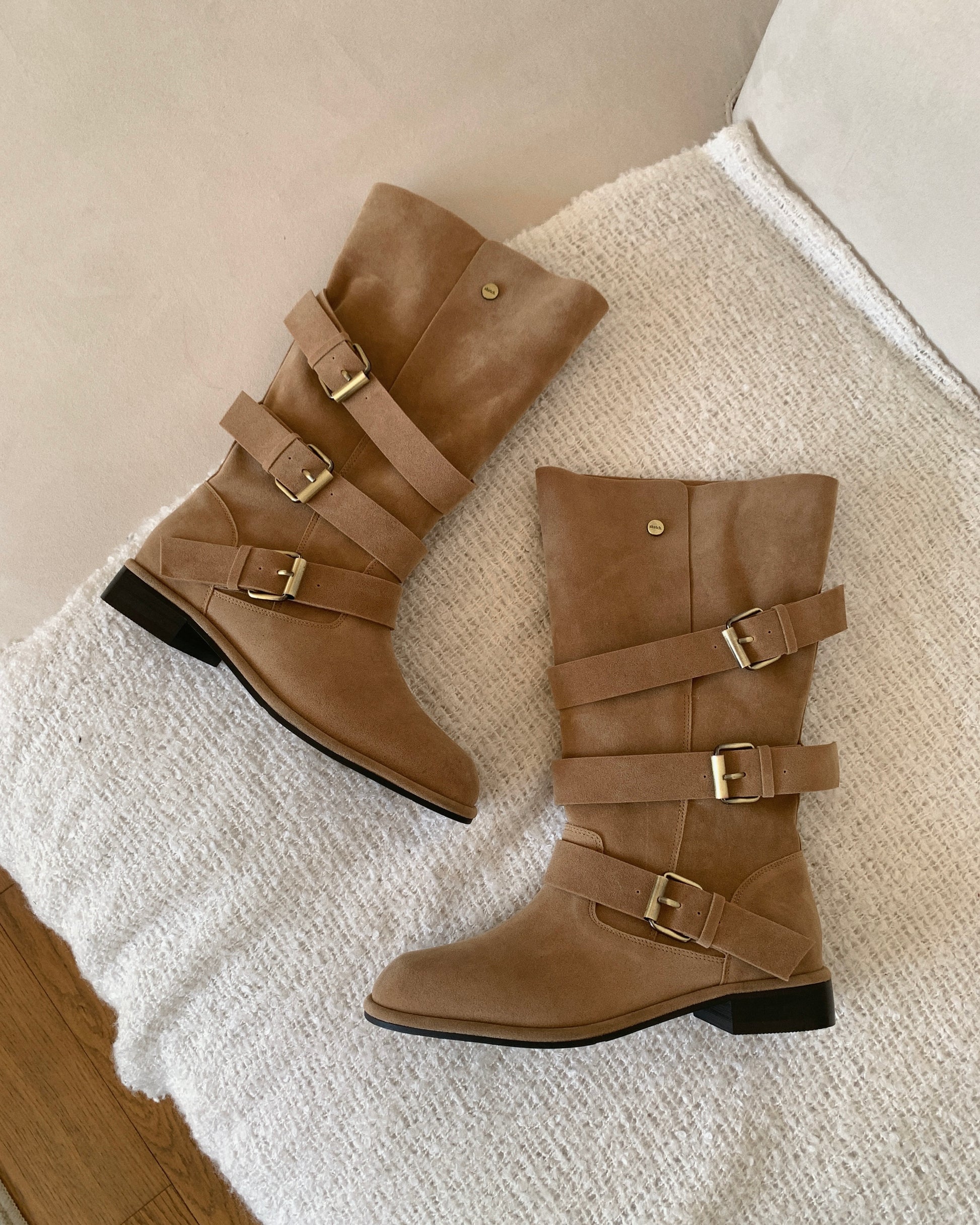 【2 ways可反笠| 零秒提升穿搭感】冬日感復古金扣中筒麂皮長靴