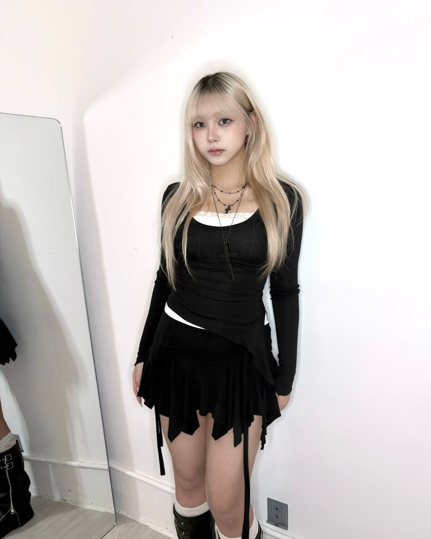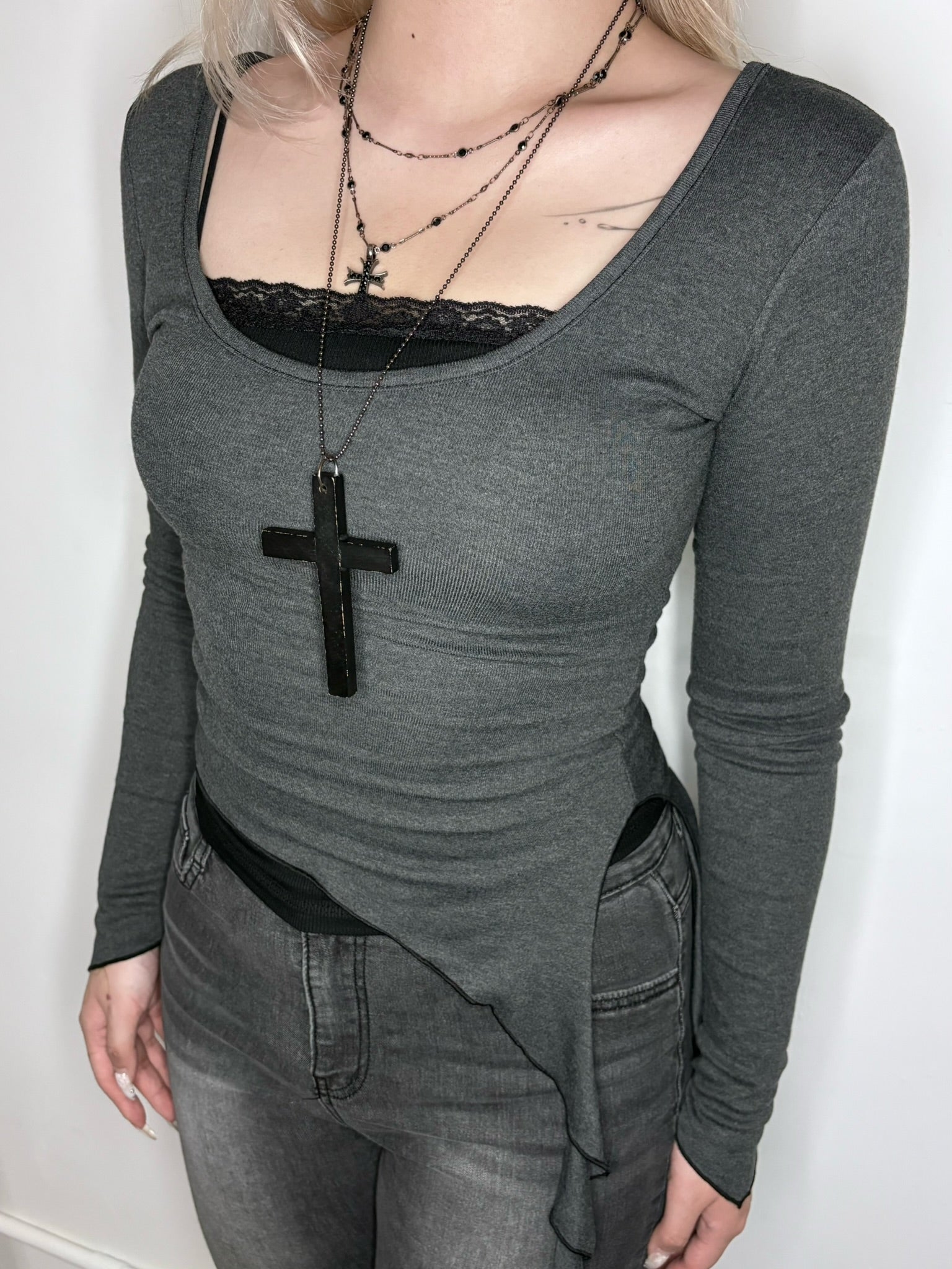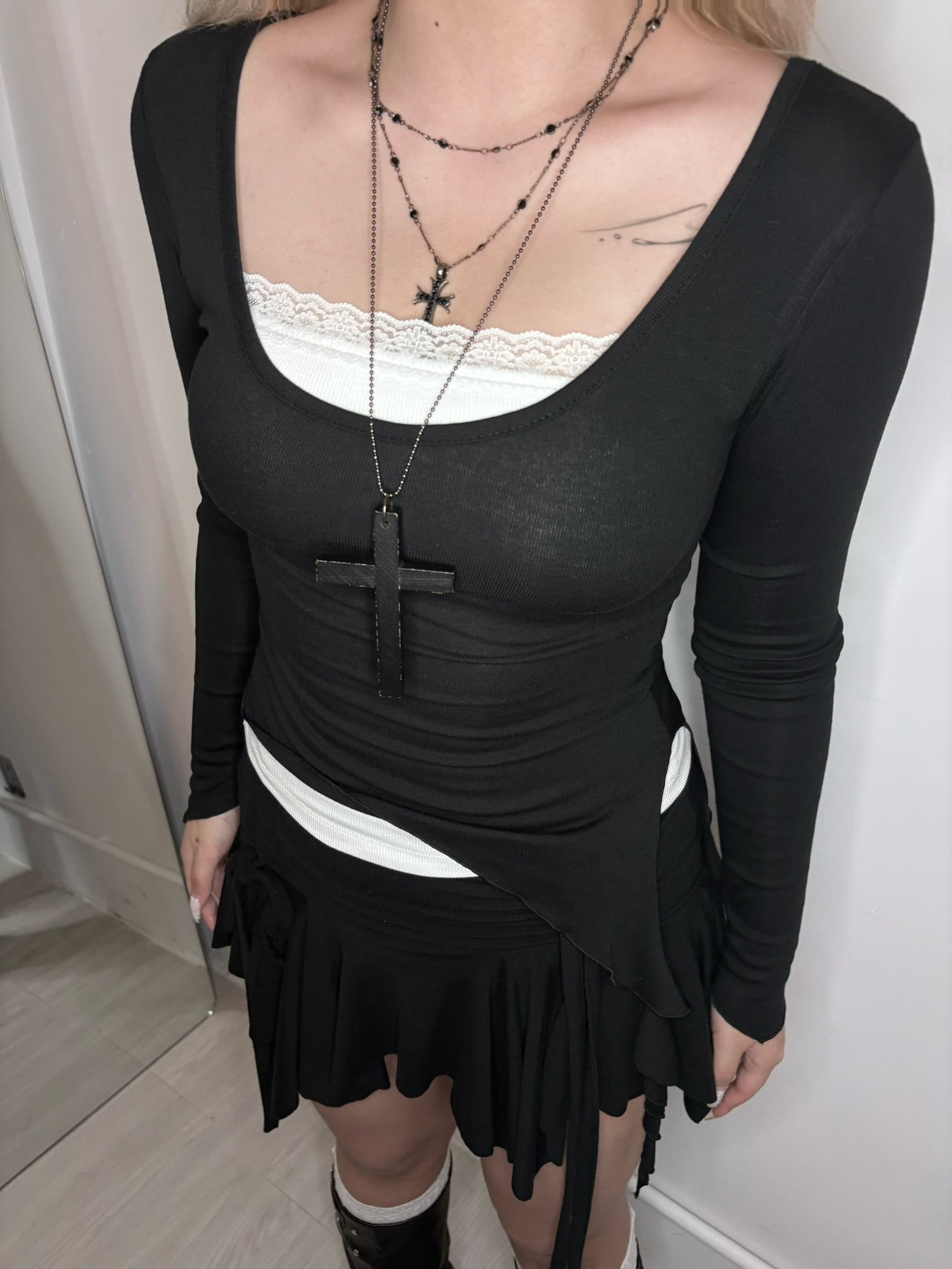 【韓式芭蕾舞風疊穿🩰氣質顯身材3 in 1】Soft Spoken 側開叉垂墜吊帶U領Top