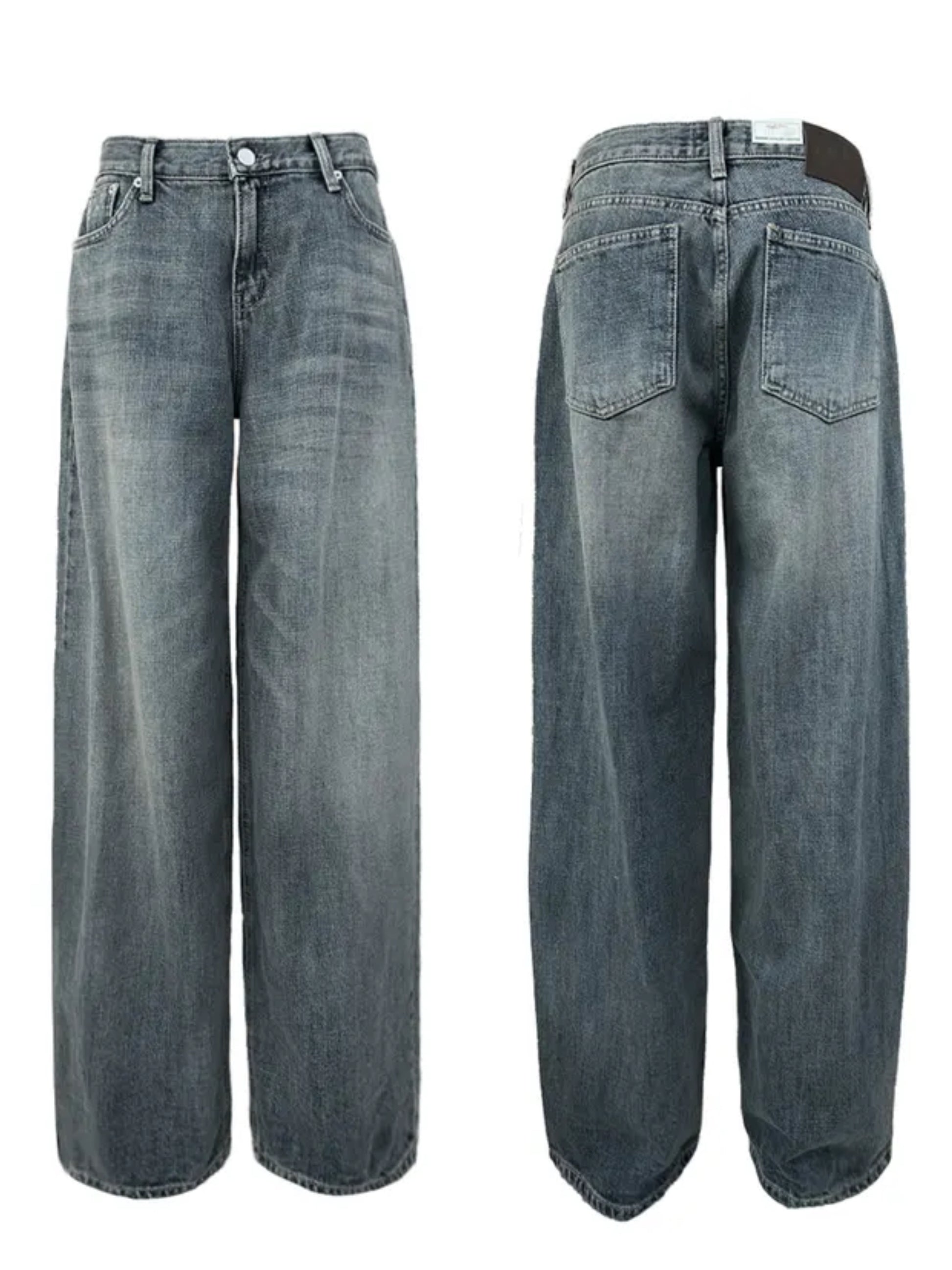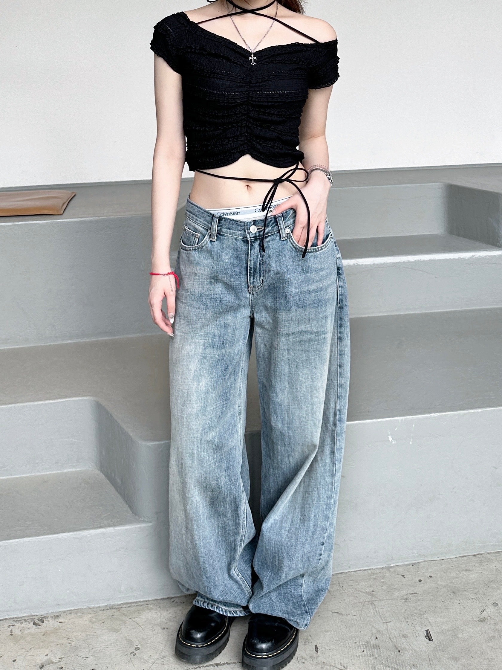 中低腰剪裁 垂直+闊褲設計|A字修Hip剪裁 自然垂墜內彎 完美隱藏胯寬|經典復古造舊刷色|不焗促牛仔布| 微胖首選直腳闊褲