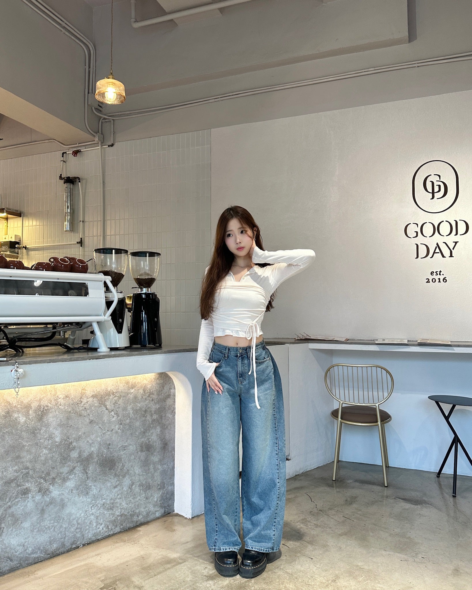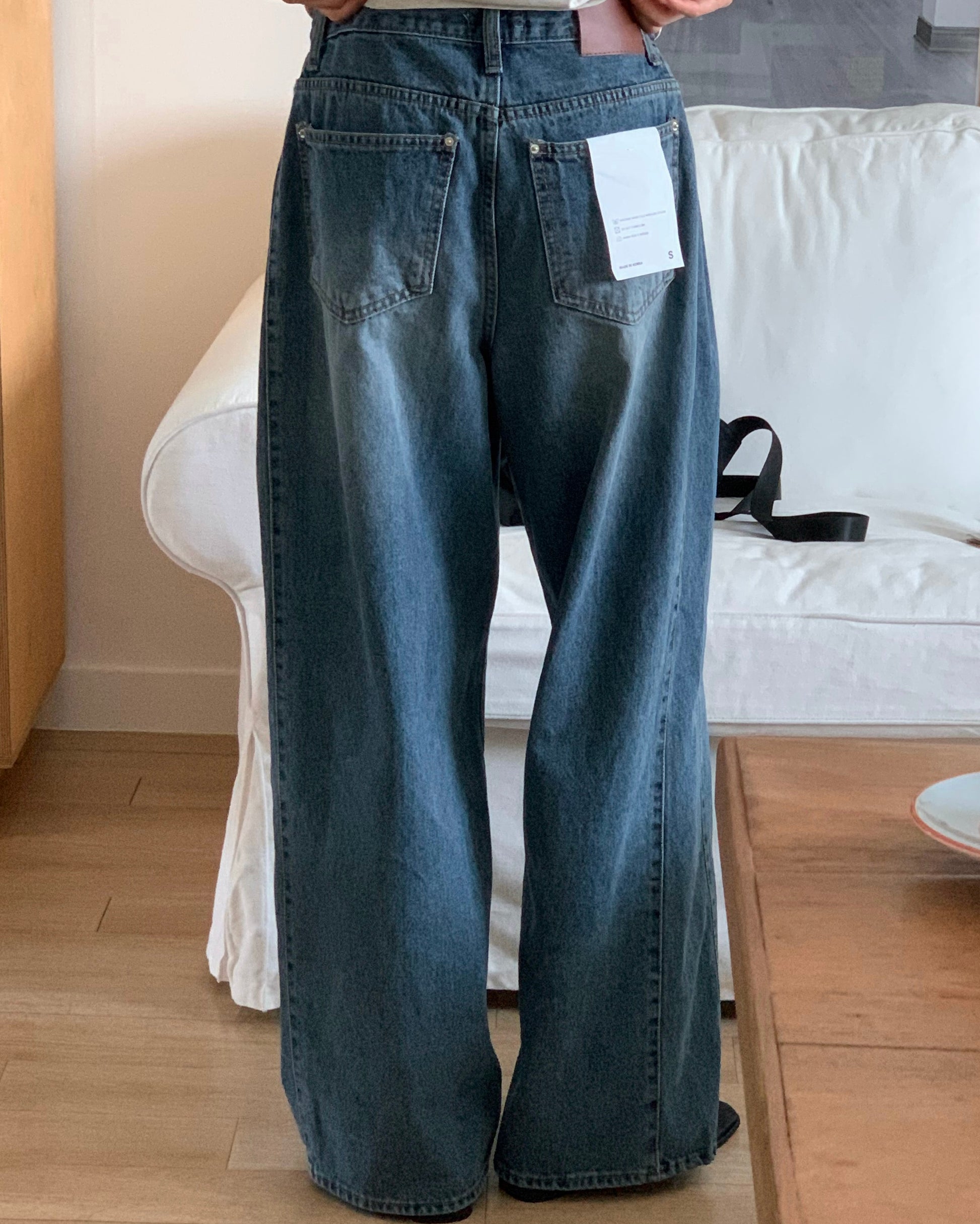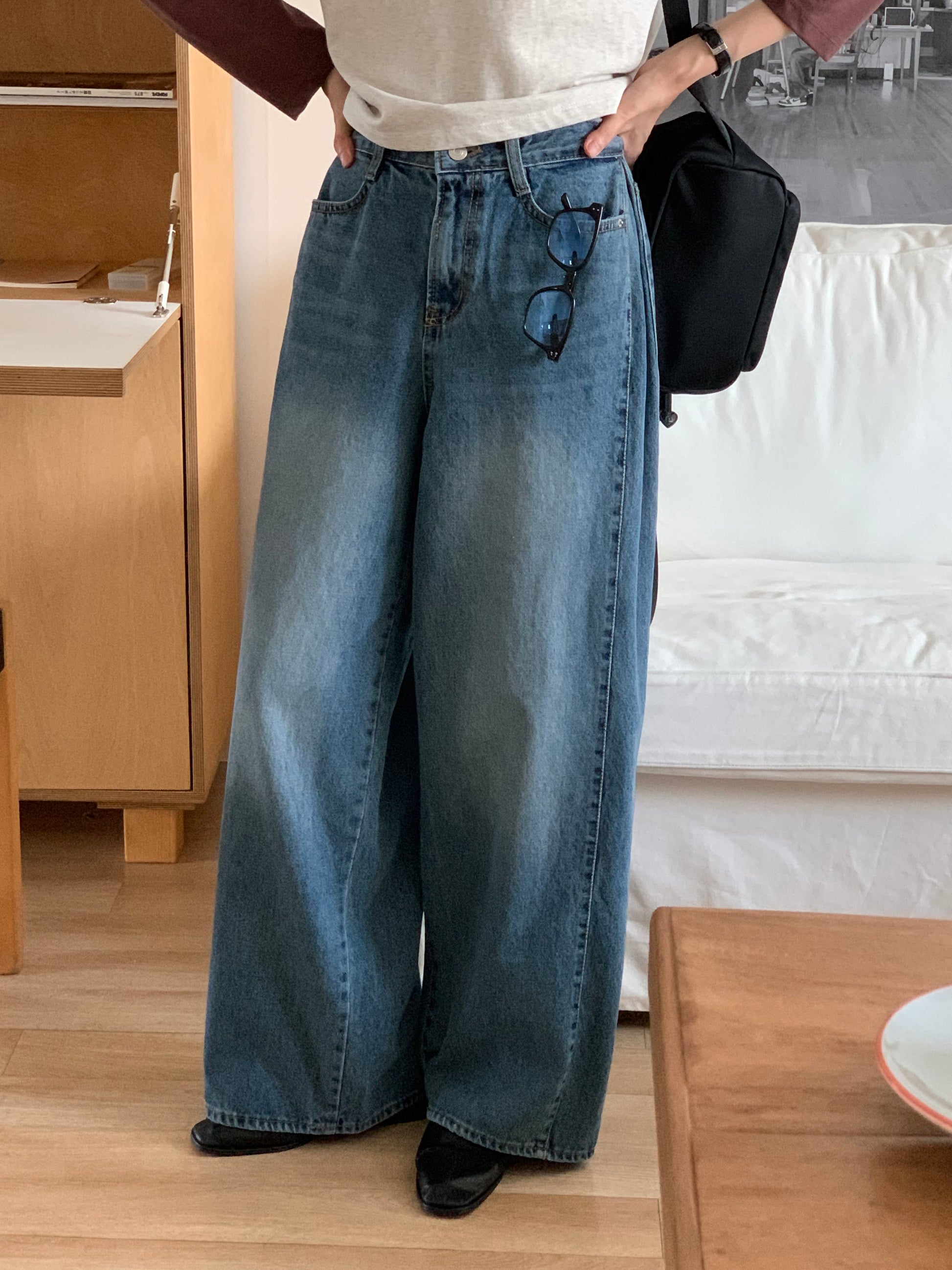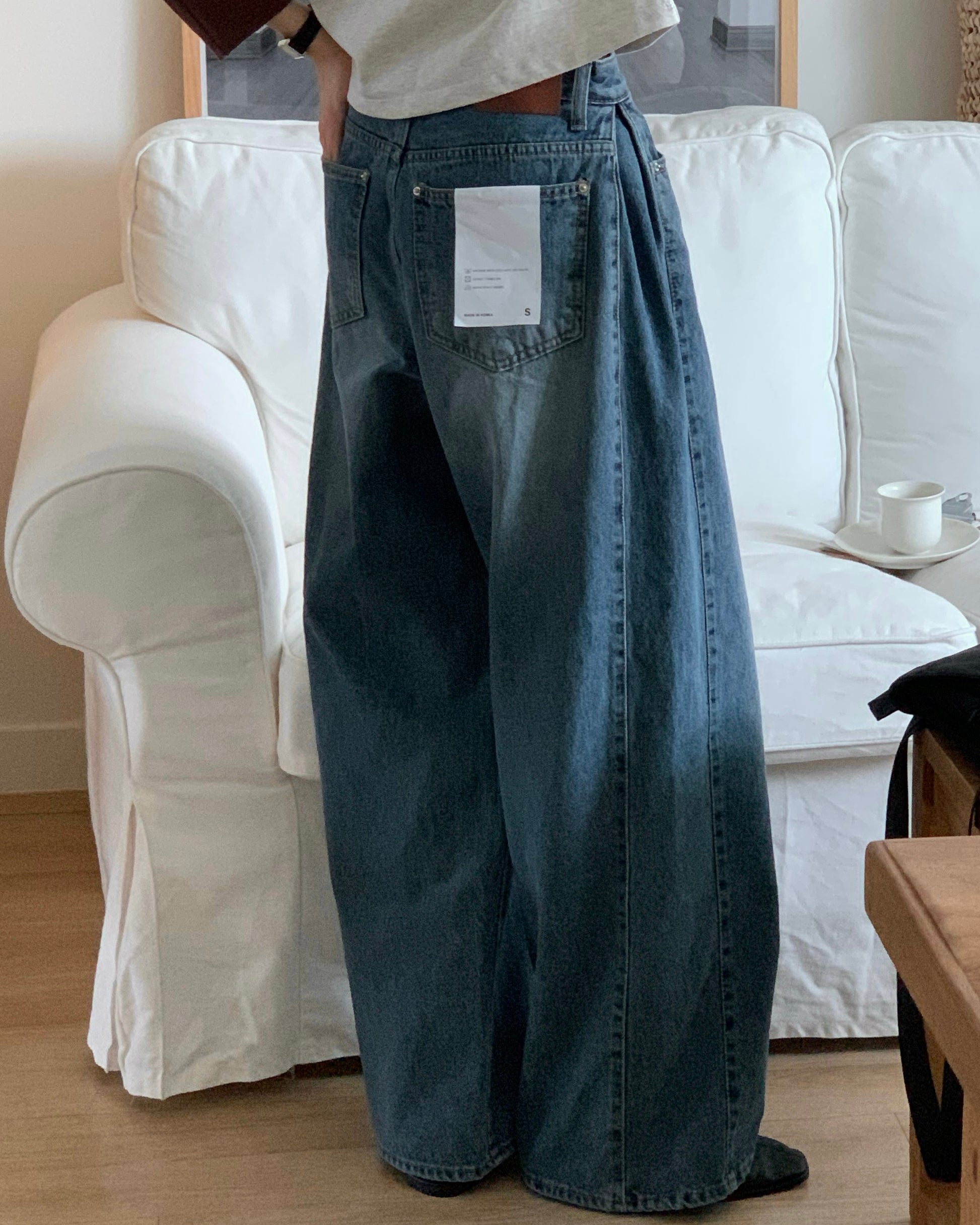 【Daily經典百搭】韓系Side Tuck暗摺微彎牛仔闊褲