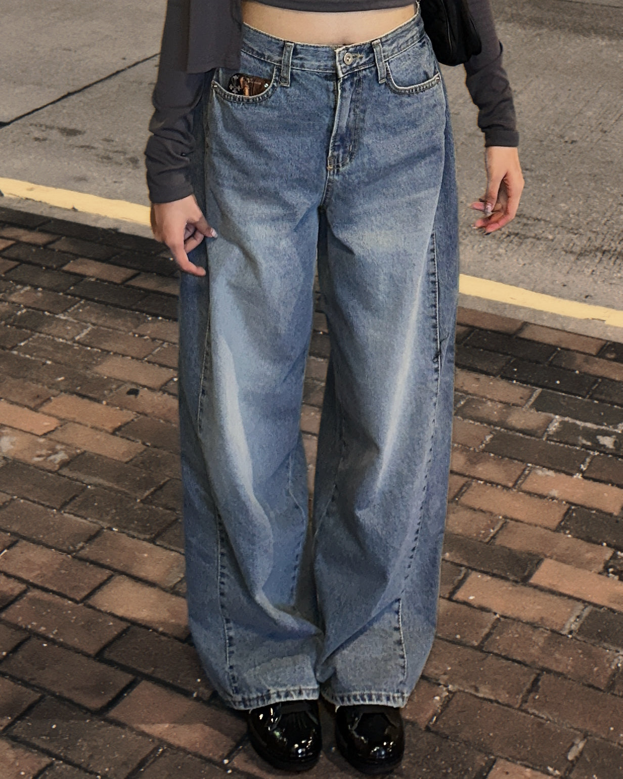 ① 小個子版Baggy Jeans/ 160~165 不踩踭闊褲 ② 韓版設計 高腰垂墜挺身闊褲 ③ 經典牛仔式低調百搭