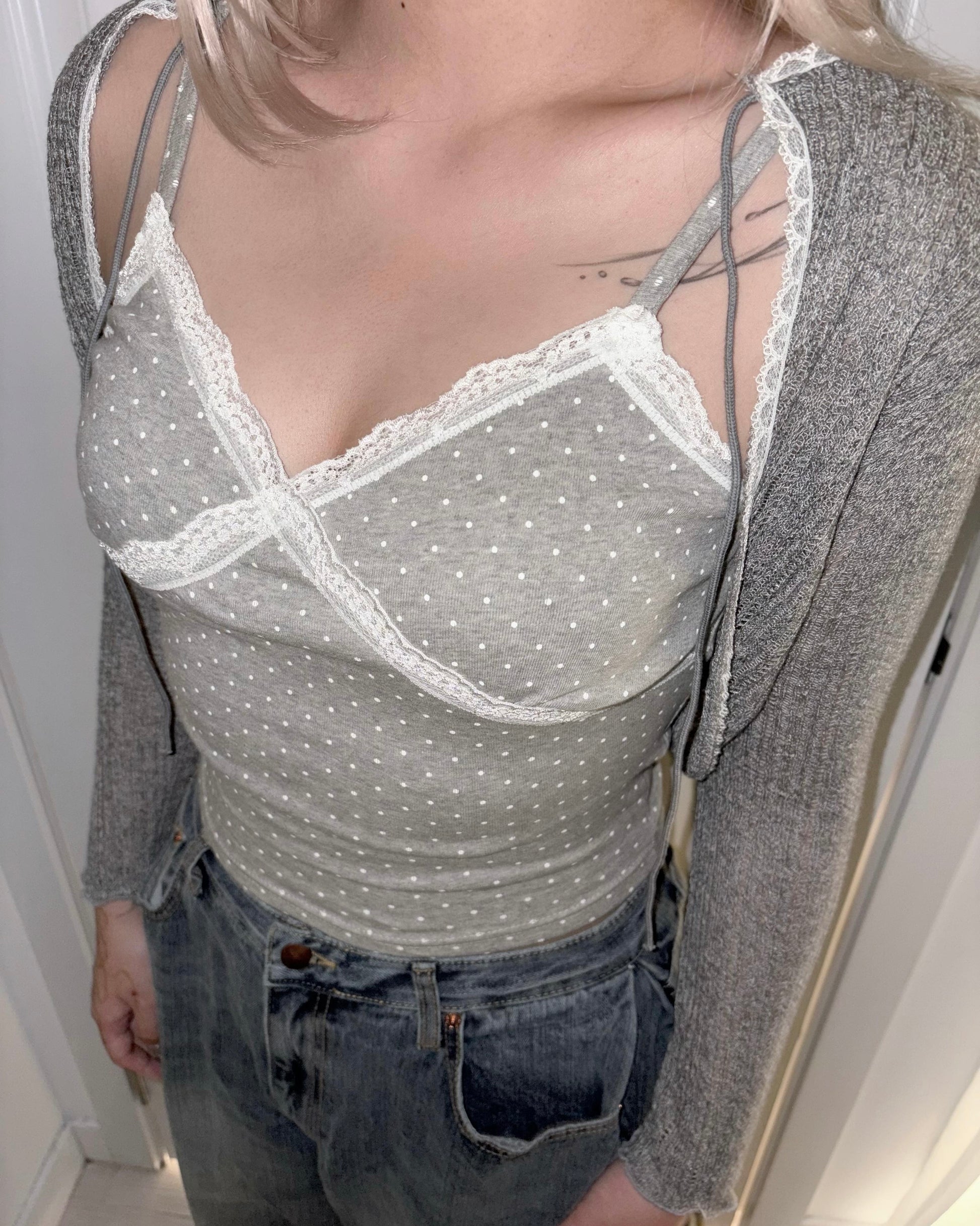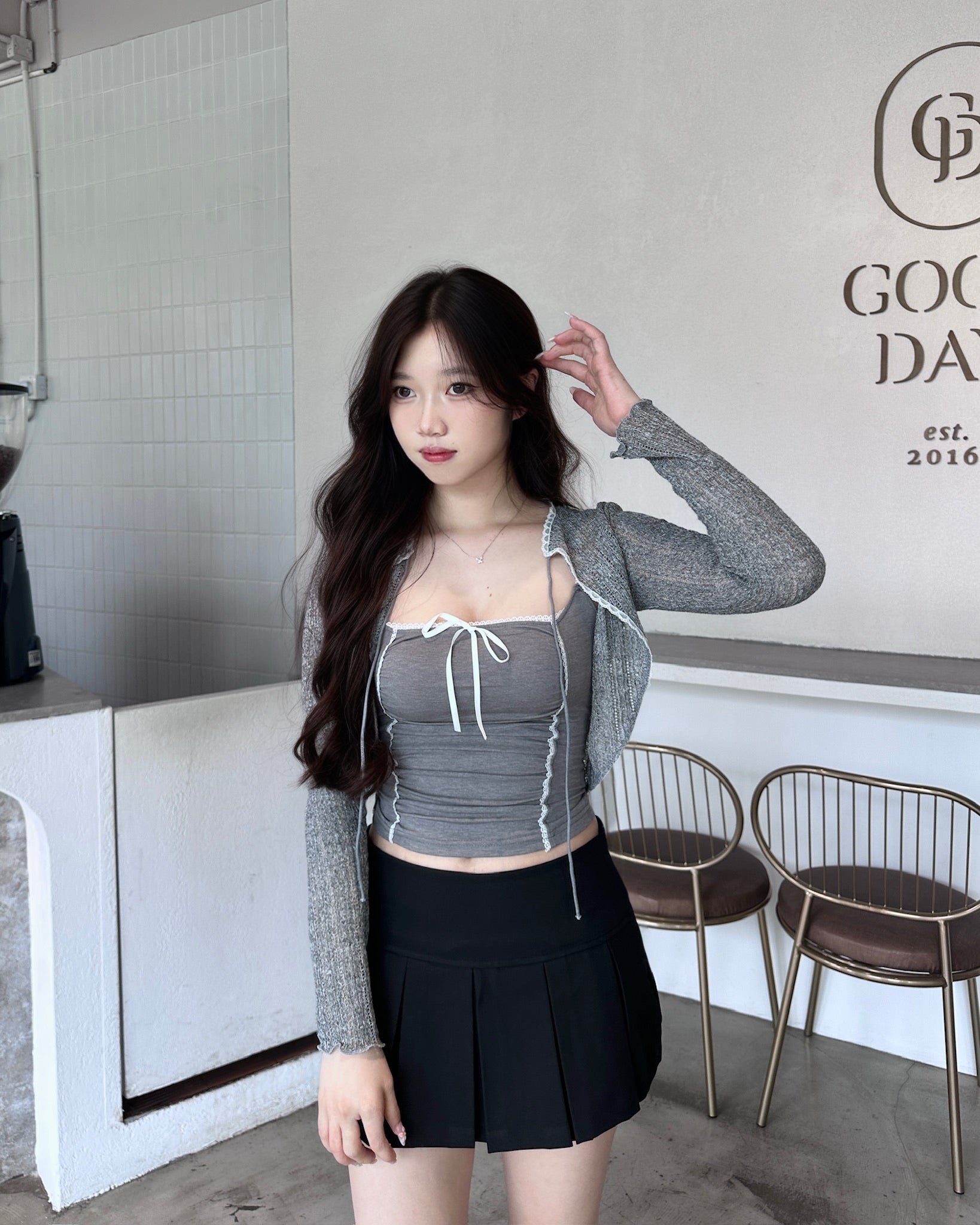 開胸 OR 綁結2穿 蝴蝶結直接替代飾品更方便|少女感蕾絲袖邊設計 可愛不單調|短版剪裁適合不同身型身高|