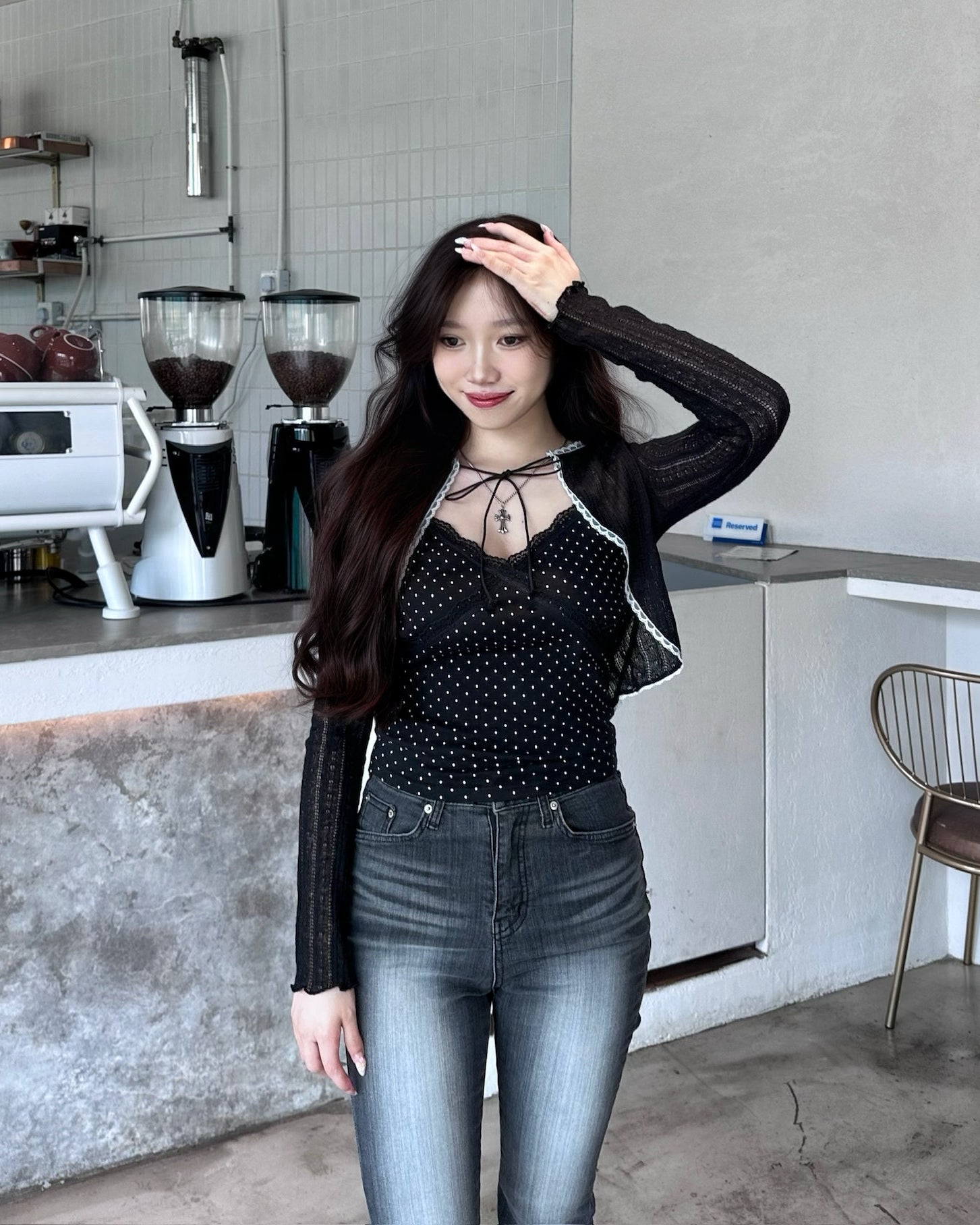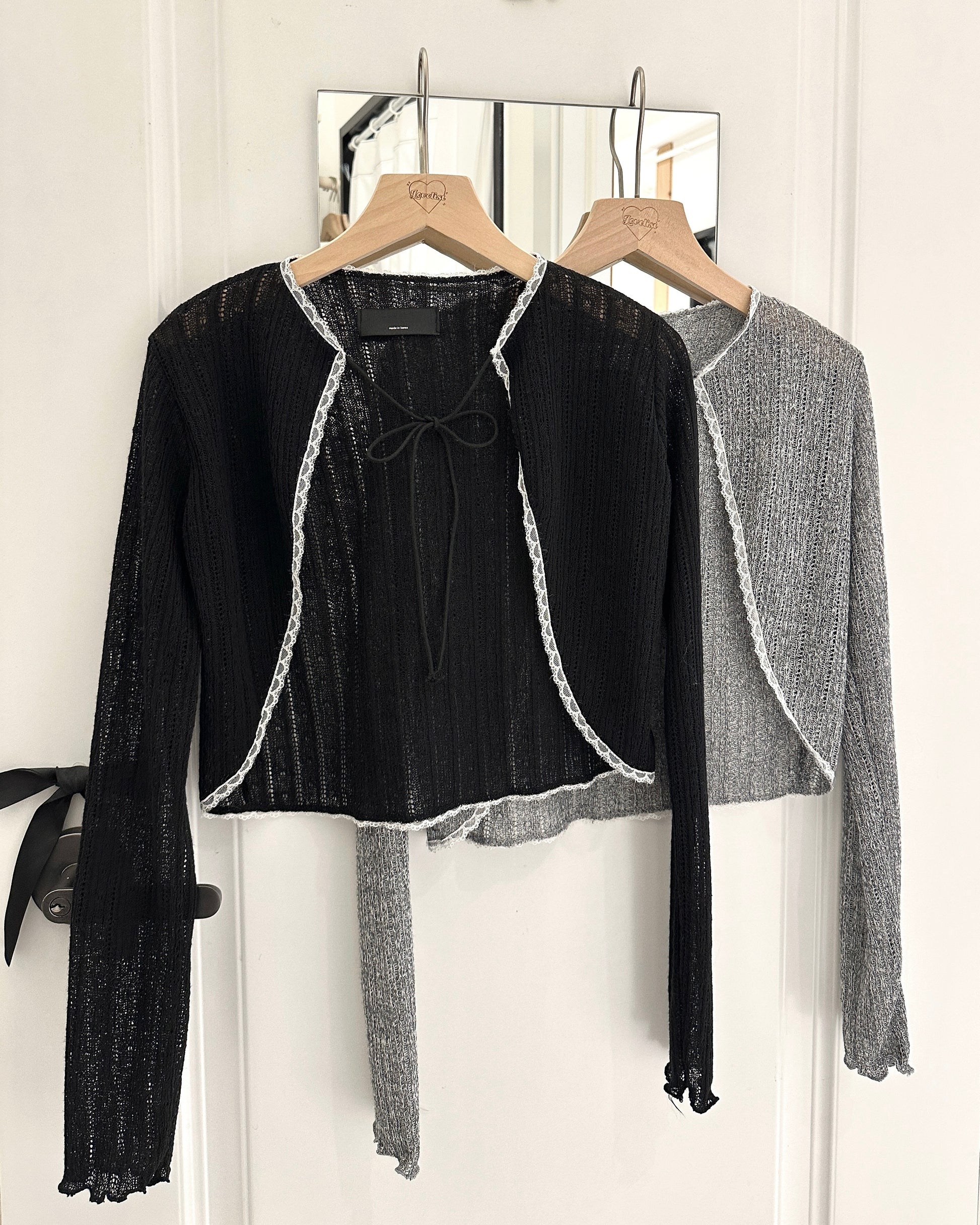 【日常外搭Pick】Airy輕透蕾絲蝴蝶結針織短版外套