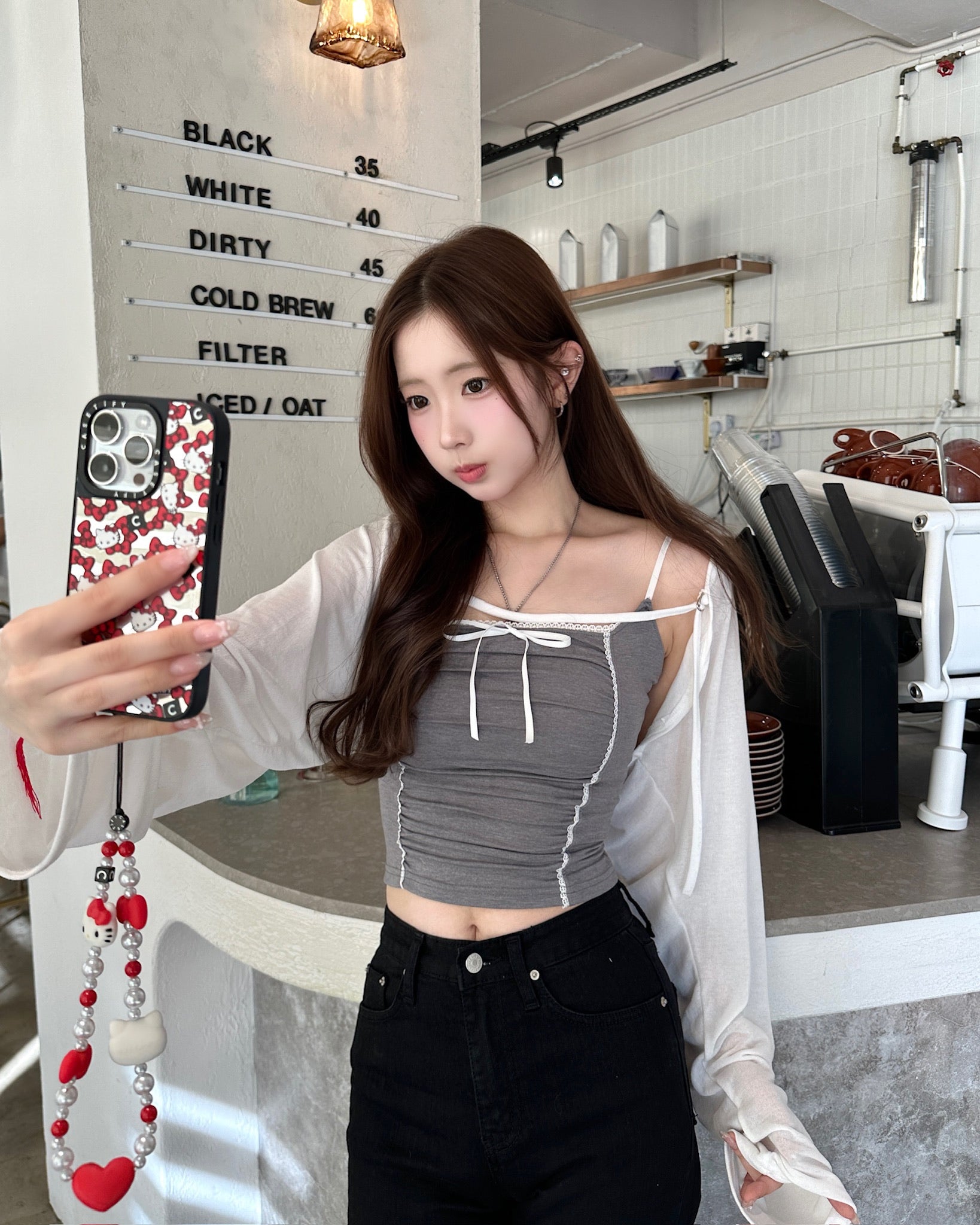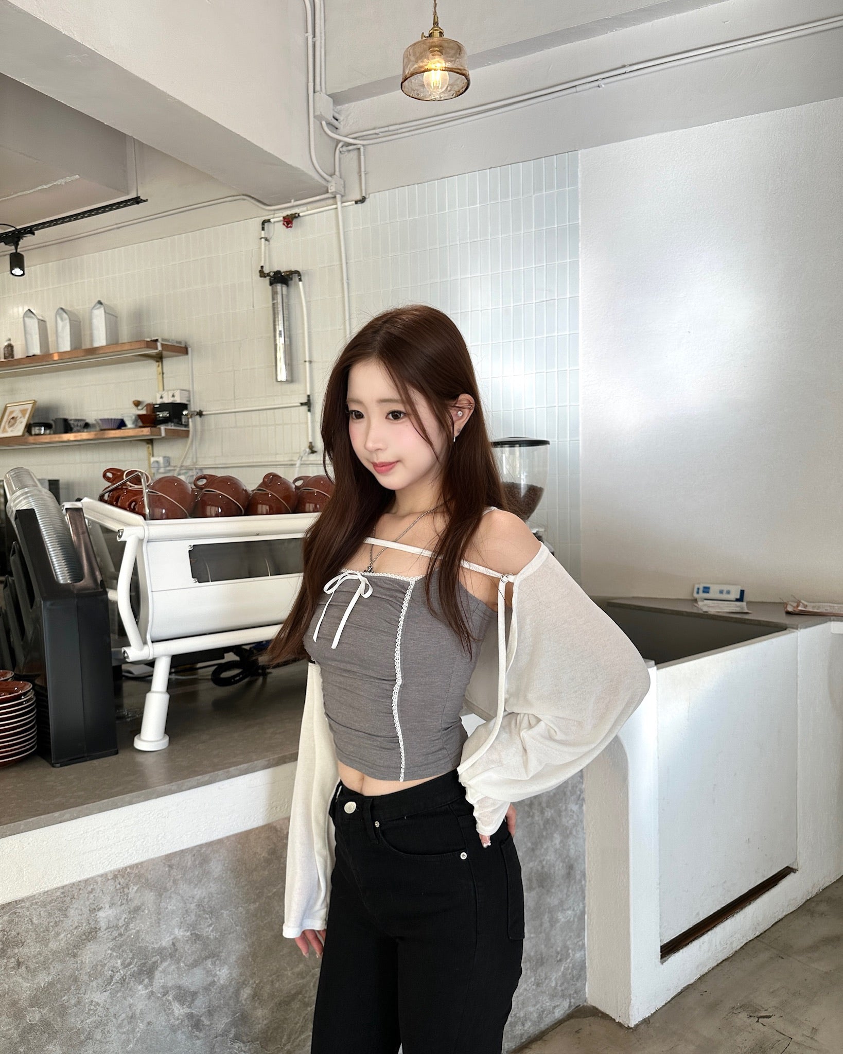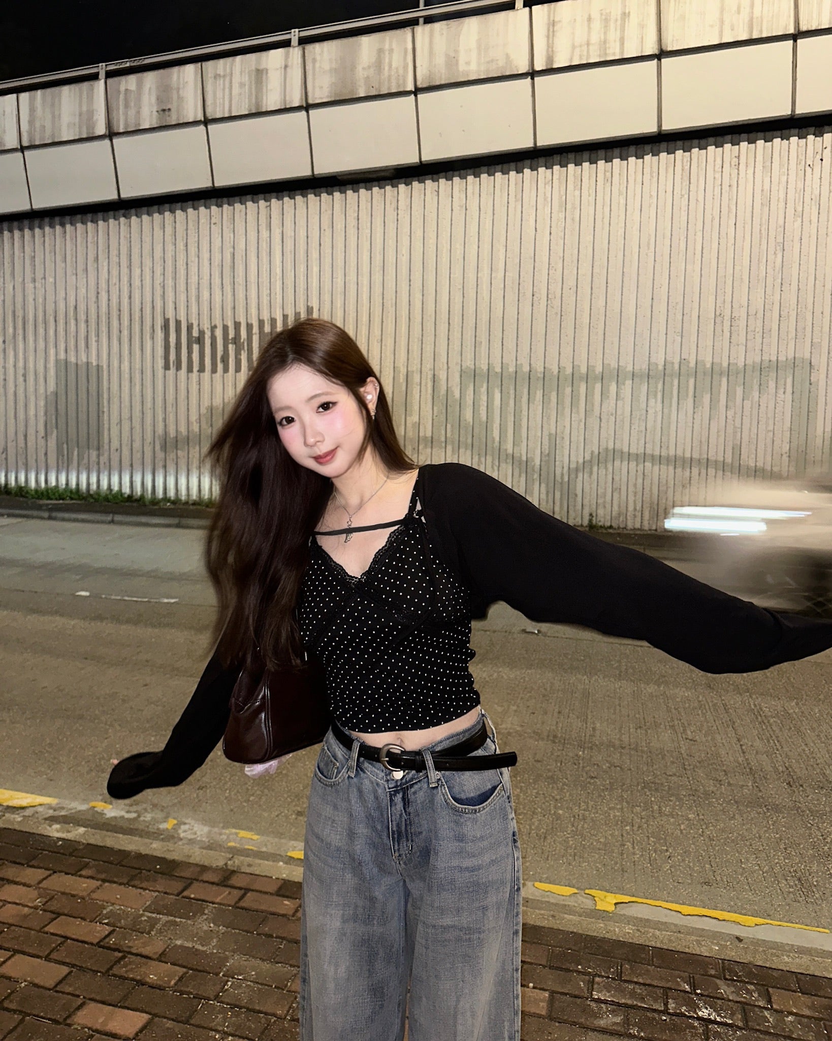 心口吊帶設計 銀扣位置裝飾deco 可調節鬆緊 半跌膊著法更性感|超寬鬆蝙蝠袖完美覆蓋手臂|極簡Clean Fit純色設計 日常百搭外套Pick|短版剪裁適合不同身型身高