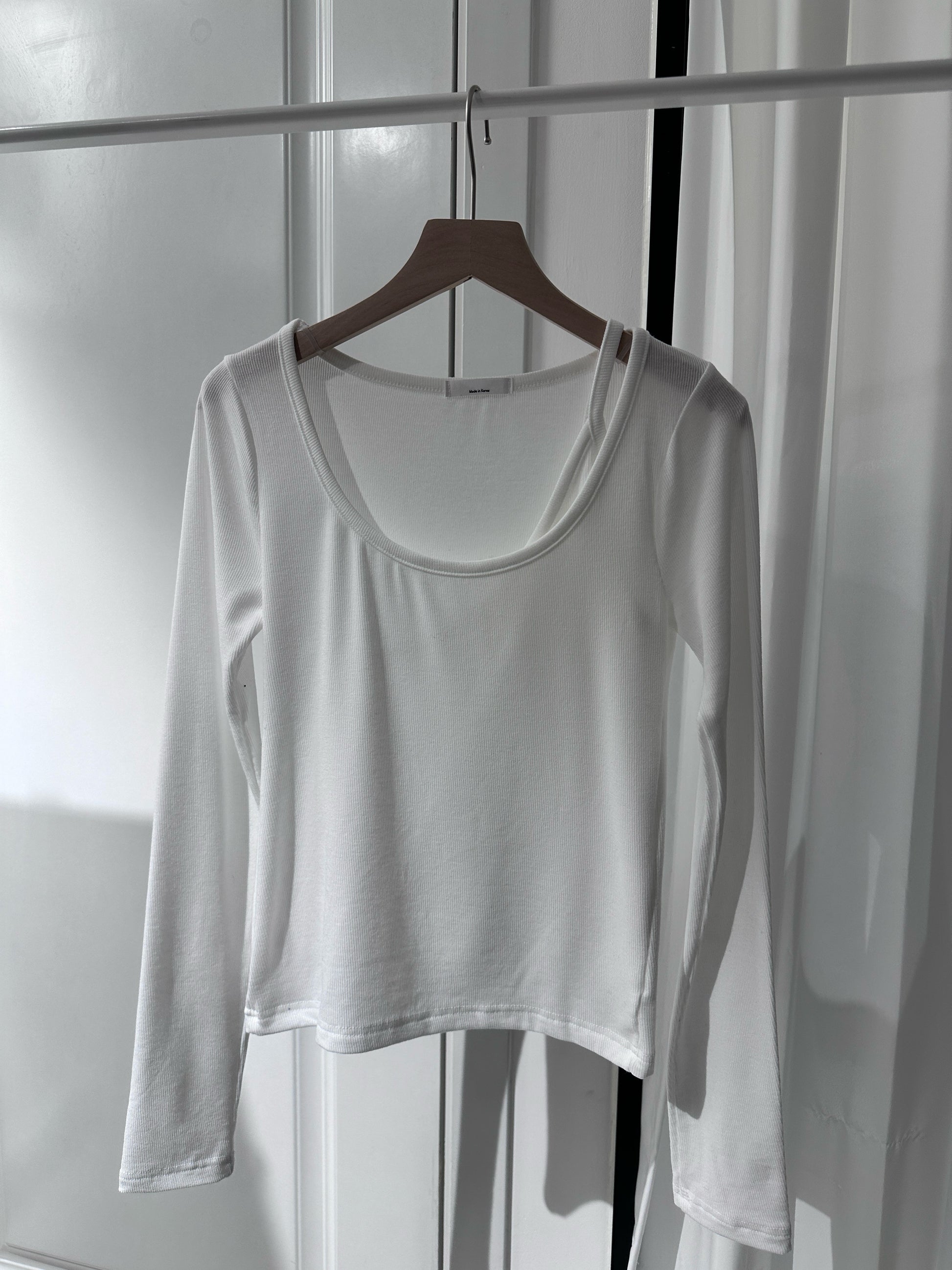 【即將停產Last Call】極簡軟滑單肩吊帶假兩件疊穿長袖Top