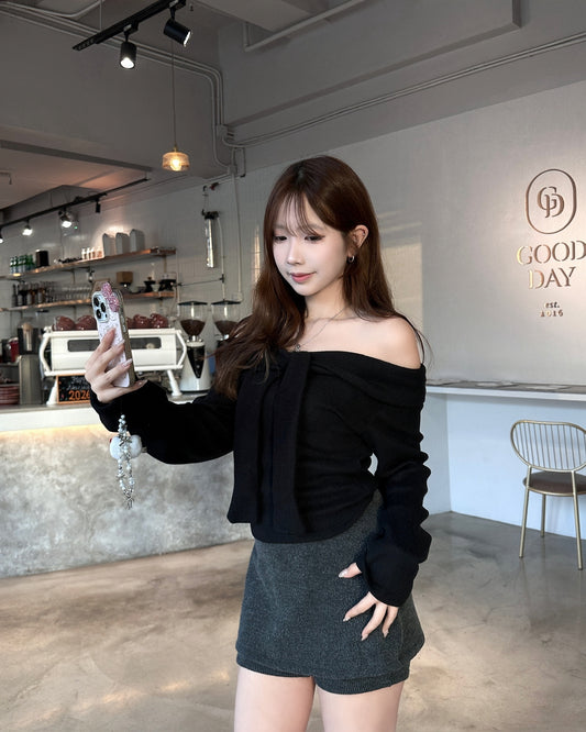 【CNY情人節必選 ♡ 甜美氣質感】Snowy Fluffy雲朵感絨毛綁結領巾Off Shoulder Top
